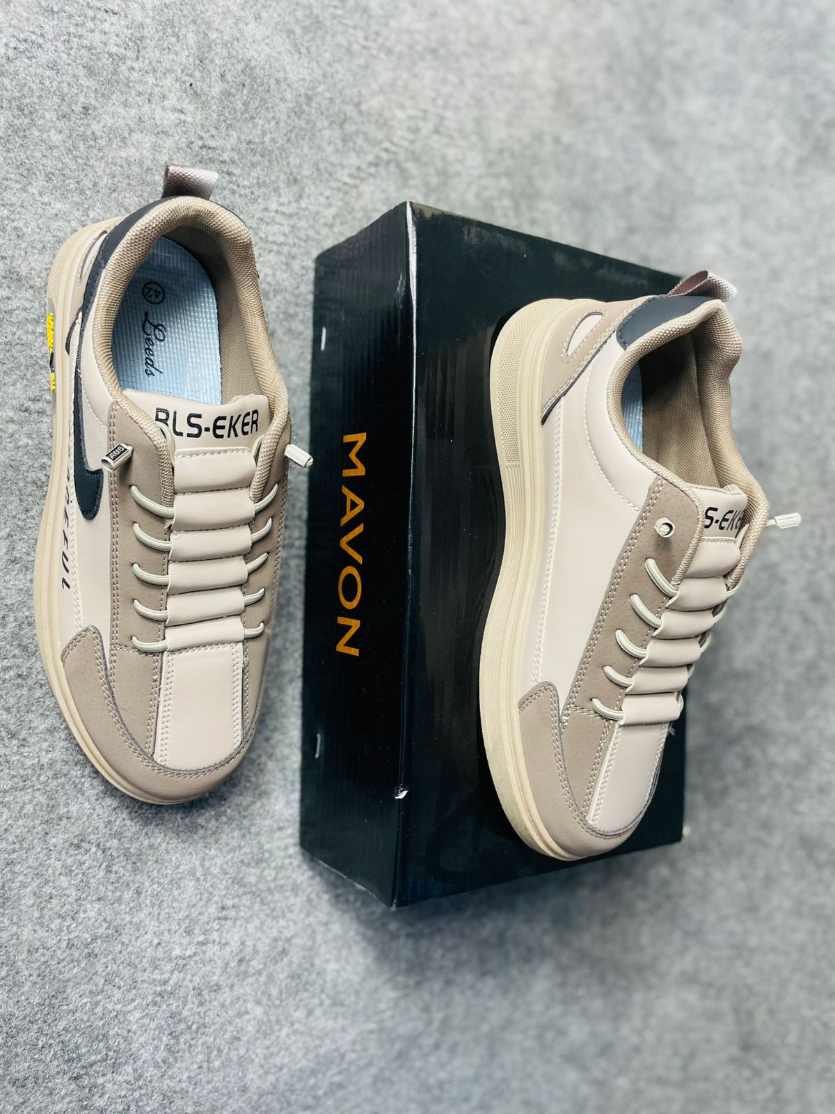 Designed with high-quality synthetic leather and a durable rubber sole, this sneaker ensures a lightweight feel with maximum grip. The soft beige and brown color combination adds a classy, modern touch that fits any outfit. Whether you’re heading to the office, a hangout, or a weekend trip, this pair keeps your steps effortless and stylish.